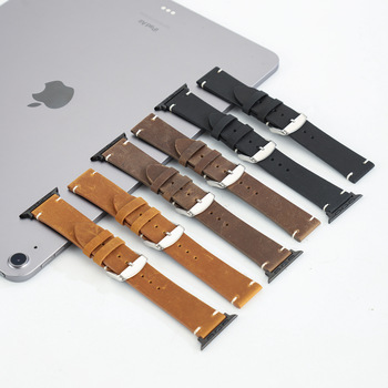Adecuado para Apple Watch10 Retro Crazy Horse Pattern Correa de cuero Oil Wax Pin Hebilla Correa de reloj